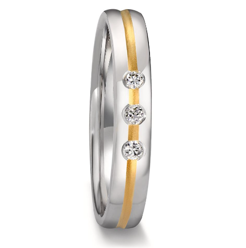 Alianza de titanio, oro amarillo de 18kt y 3 diamantes de 0.09ct calidad W/SI